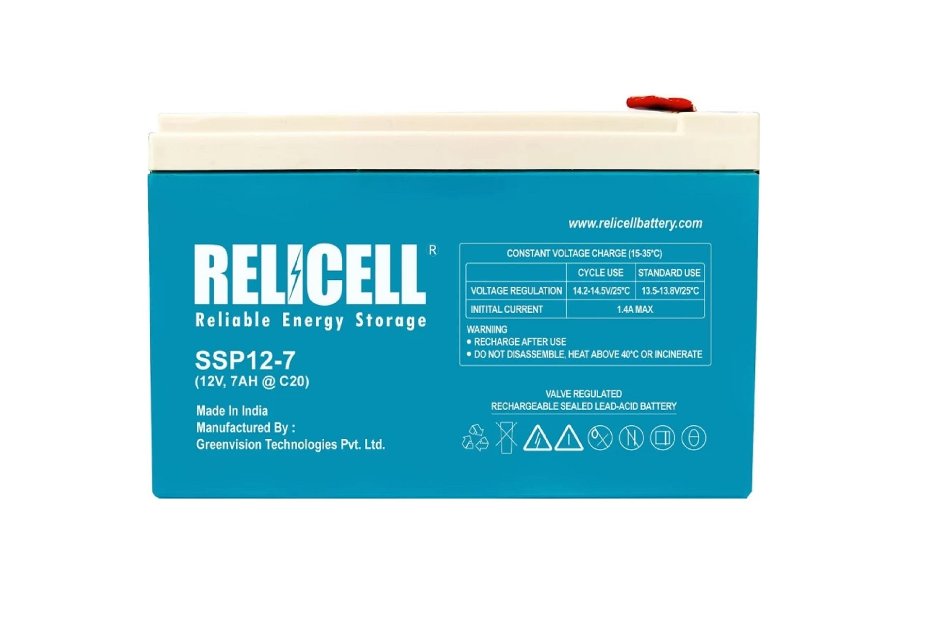 Relicell 7 Ampere-Hours cab be used in Uninterruptible Power Supply (UPS) systems, solar applications, and other standby power requirements.